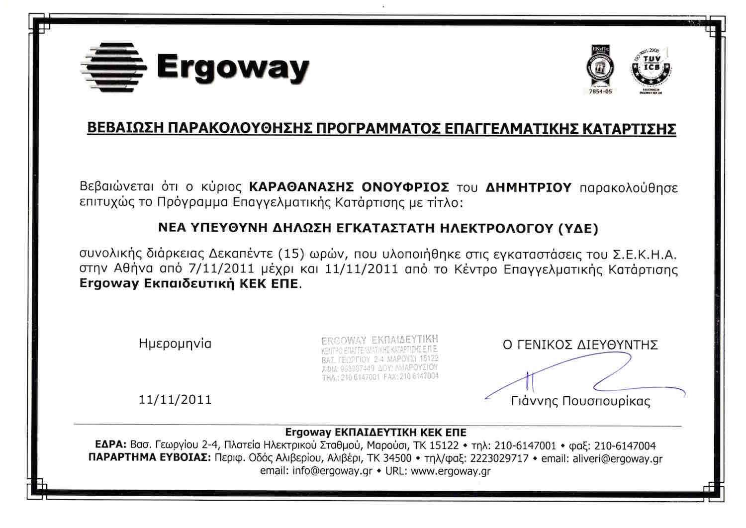 ΠΙΣΤΟΠΟΙΗΣΗ ERGOWAY