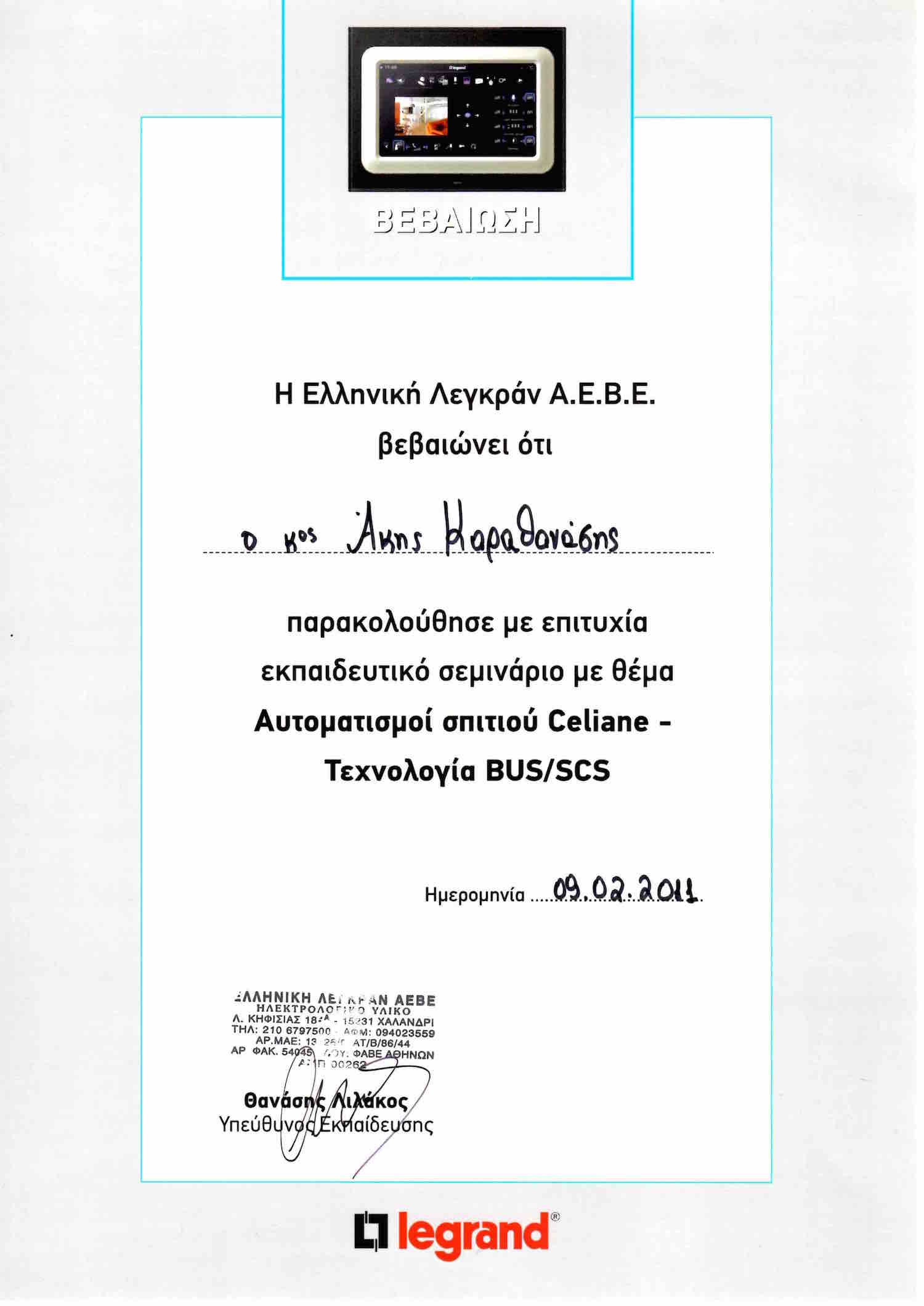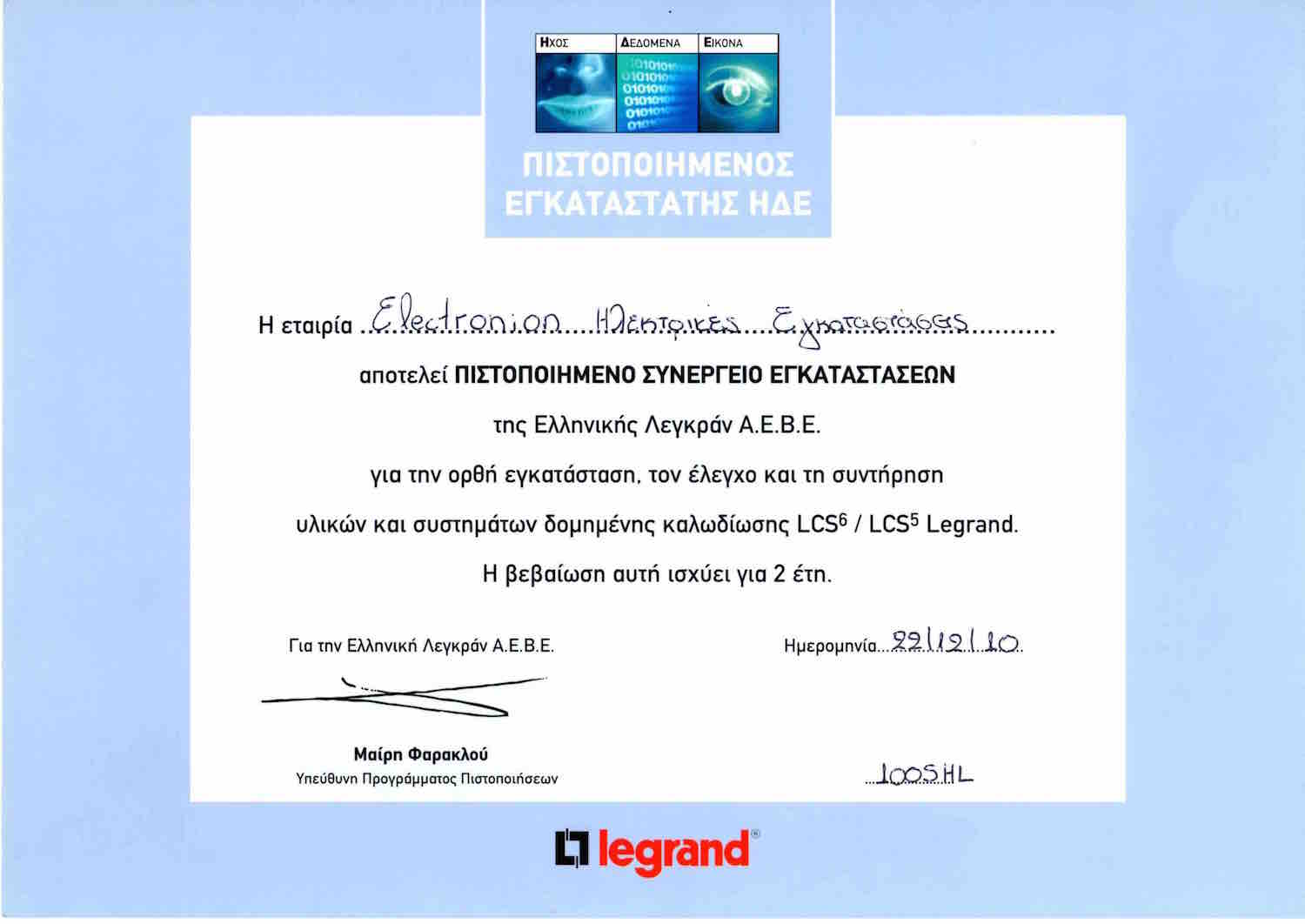 ΠΙΣΤΟΠΟΙΗΣΗ LEGRAND